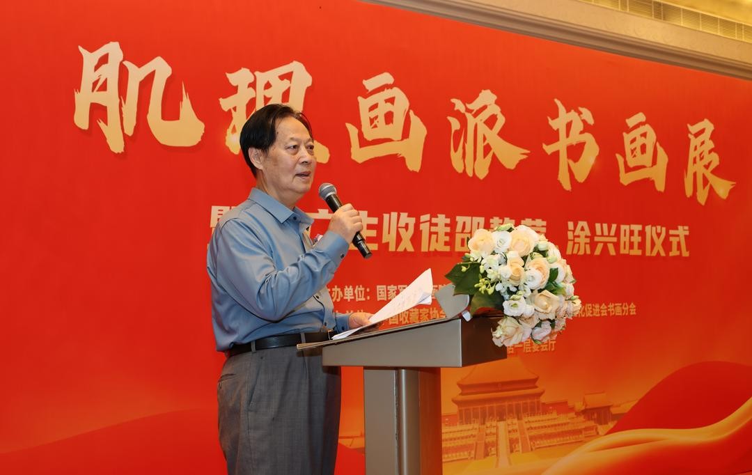 白俄罗斯国家文联中国首席代表刘瀚锴先生中国金融美协原副主席兼秘书长、金融画院主席团副主席兼画院副院长杨雍先生,湖社画会会长兼秘书长杨领军先生,中国刀画协会副主席王永贵先生,国际中国书画家交流促进会副秘书长、中国书协会员吴马先生,油画家刘占远先生广电总局中国民族影视促进会短视频与直播专业委员会副会长,晟宇传媒集团董事长刘健先生
