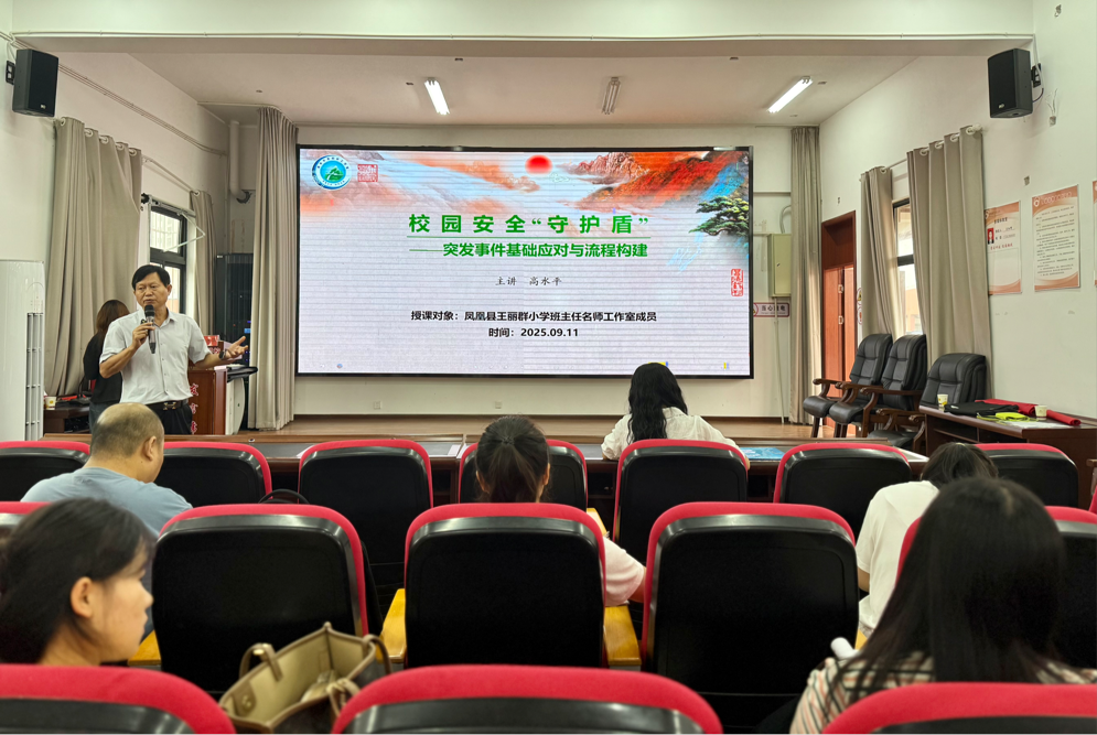 上午,湘西州高水平名校长工作室首席名校长、吉首大学教育硕士研究生导师、国家级心理咨询师高水平老师的《“校园安全“守护盾”——突发事件基础应对与流程构建》专题讲座,通过问题导入和典型案例分析,系统讲解了校园日常突发事件和危机事件类型、产生原因、识别途径、以及应急处置流程与方法,强调班级生态建设重要性,助力班主任依法依规、科学高效开展工作,守护学生健康成长。