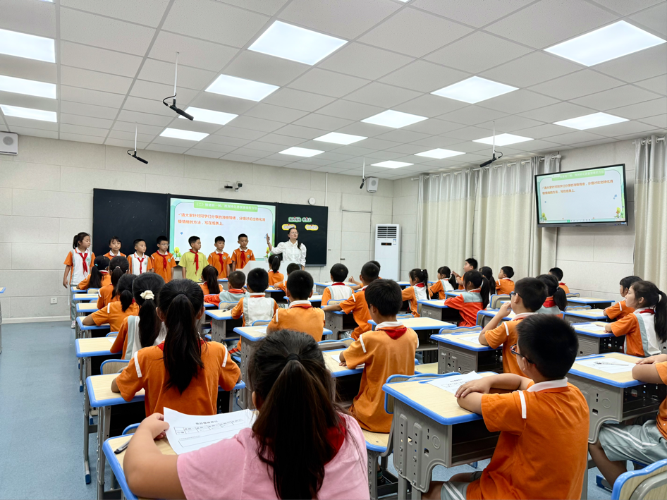 课例展示环节,工作室成员龙芳老师,为教师们展示了一堂四年级心理健康班会课《我的情绪我做主》。她以游戏导入,创建轻松愉快的班会氛围,以“情绪”为线索,循序渐进的引导学生们认识情绪,识别情绪,接纳情绪,掌握疏导消极情绪的方法,让学生成为自己情绪的侦探和主人,用积极心态拥抱每一天。