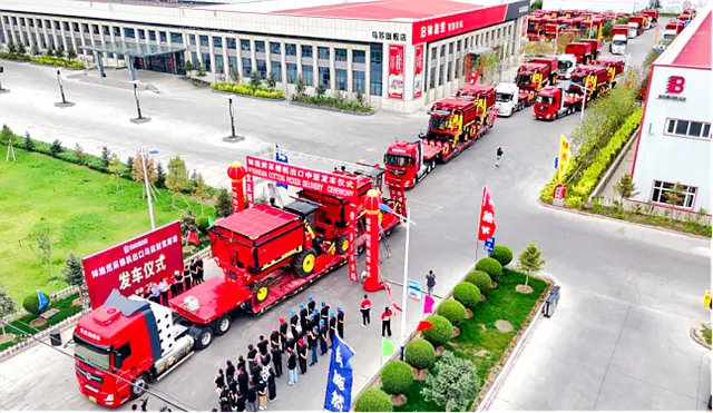 新疆钵施然智能农机股份有限公司采棉机出口乌兹别克斯坦发车仪式