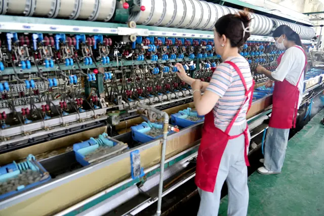 其中,旭恒佳纺织2023年投入8000余万元,引进国内最先进精梳紧密赛络纺生产线,纺纱效率提升近50%;2025年启动的“年产20万锭高端混纺技改项目”填补了全地区混纺生产空白,实现“单一纺”到“棉纱+蚕茧丝+生物丝+粘胶混纺”的突破。