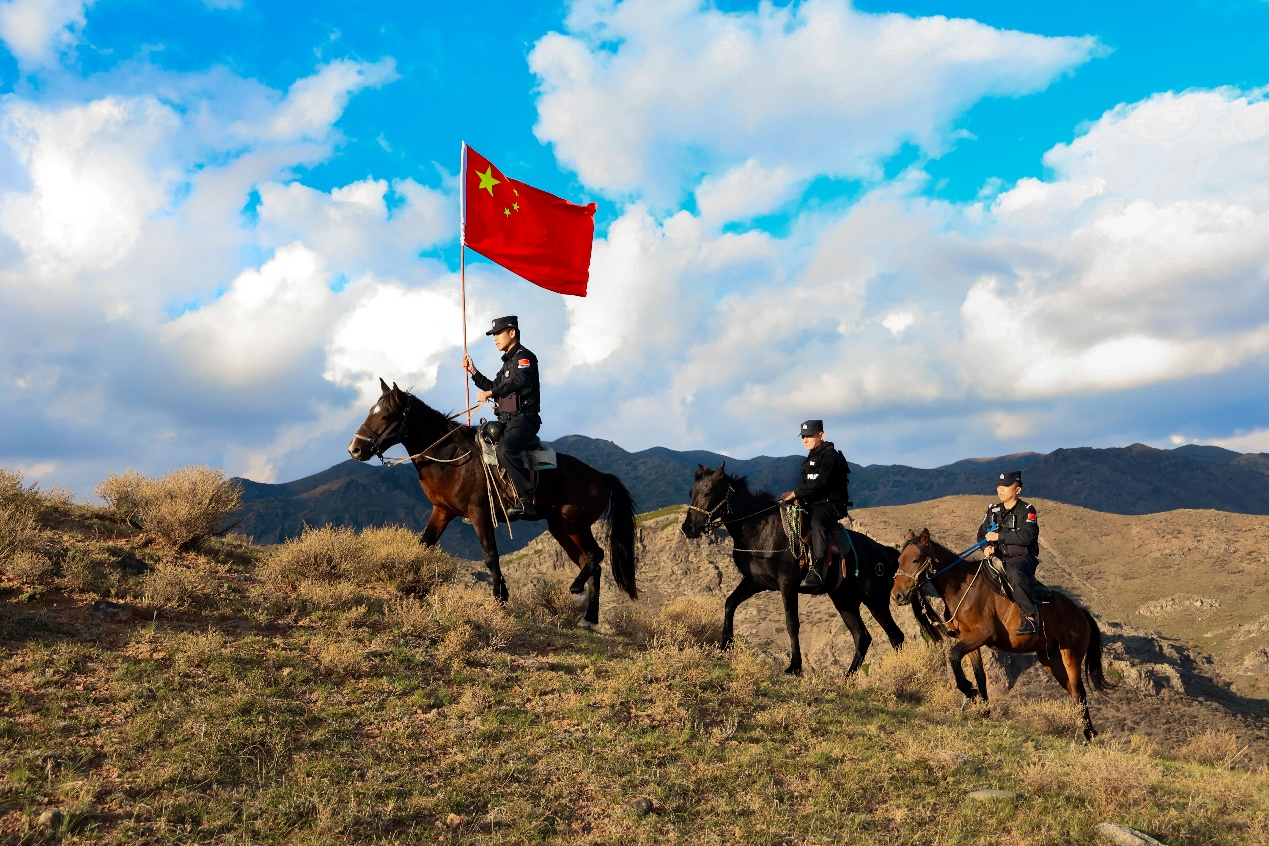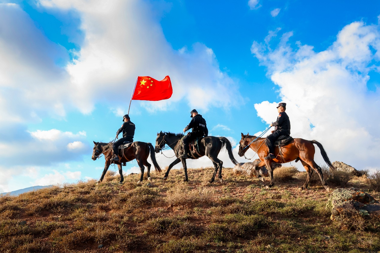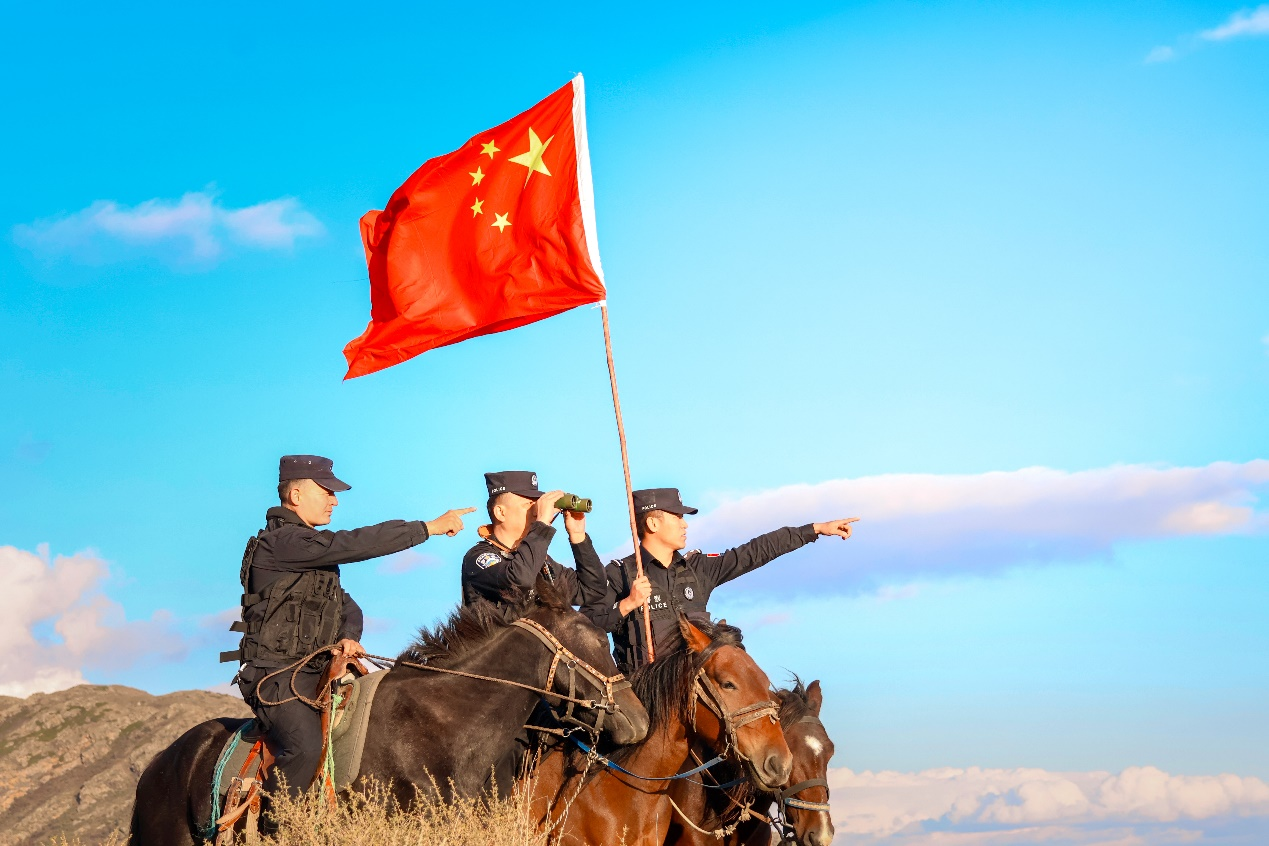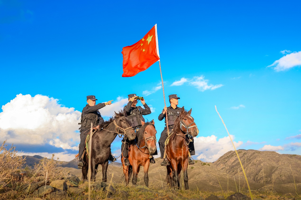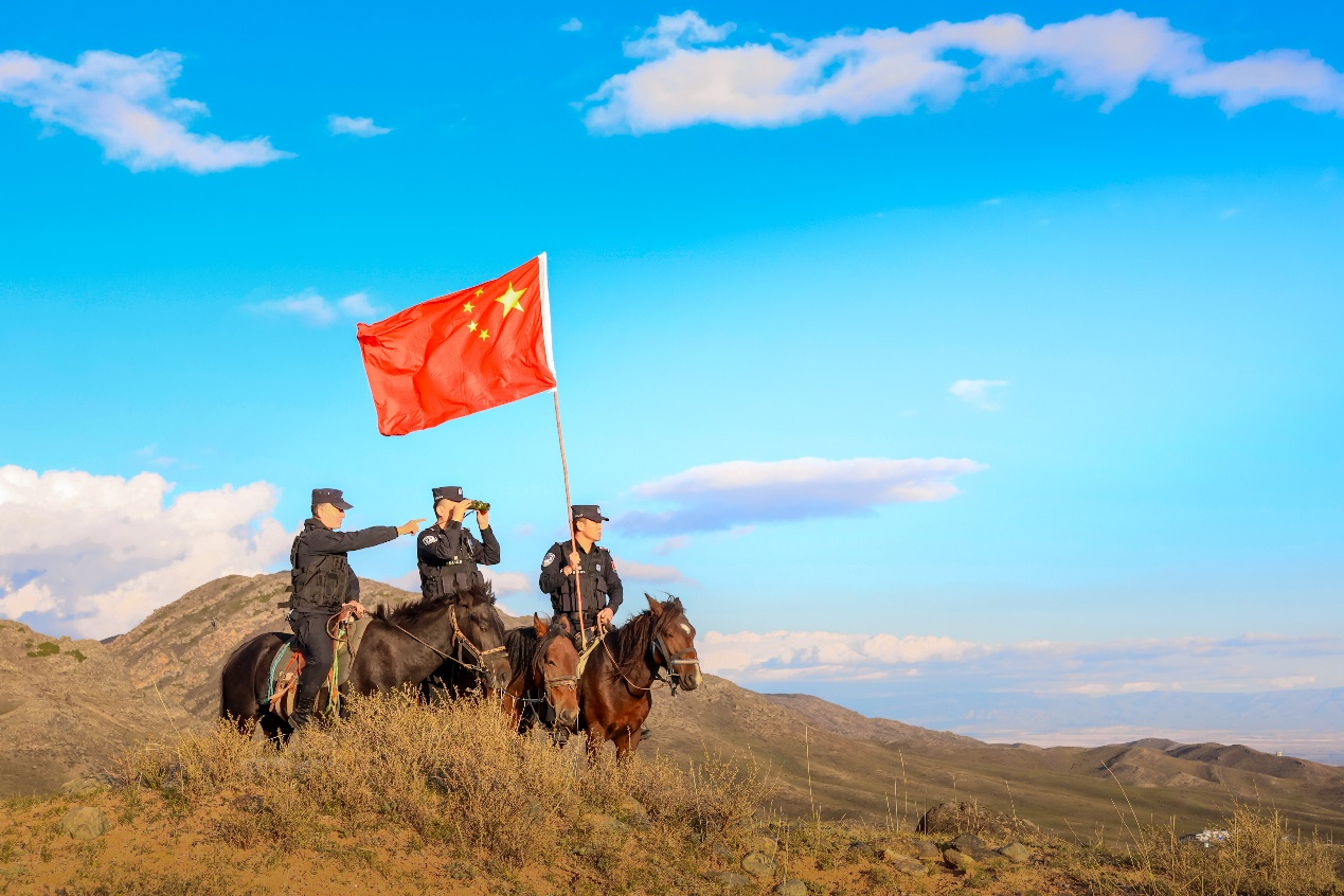 在国庆佳节来临之际,新疆塔城额敏边境管理大队移民管理警察高擎国旗驰骋在边境线上,他们用脚步丈量国境的长度,用忠诚守护着万家灯火,举起的每一面旗子,都浸透着他们滚烫的赤子之心,承载对祖国山河无恙最深情的告白。